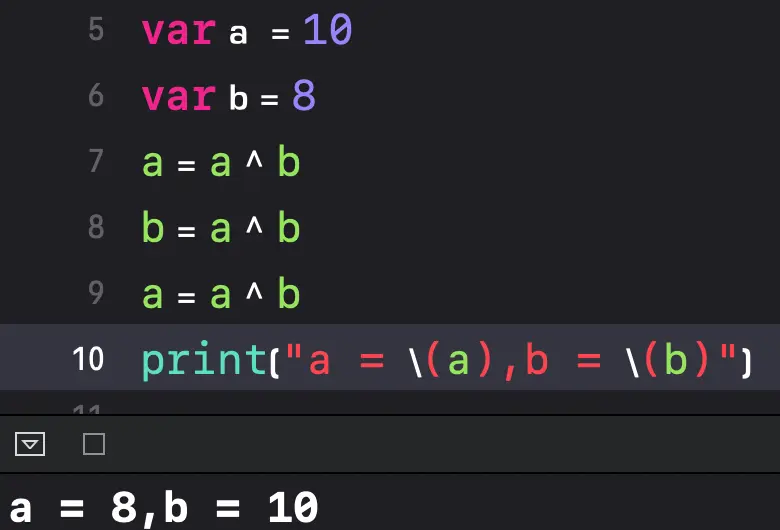 - 不借助临时变量,交换两个变量的值。