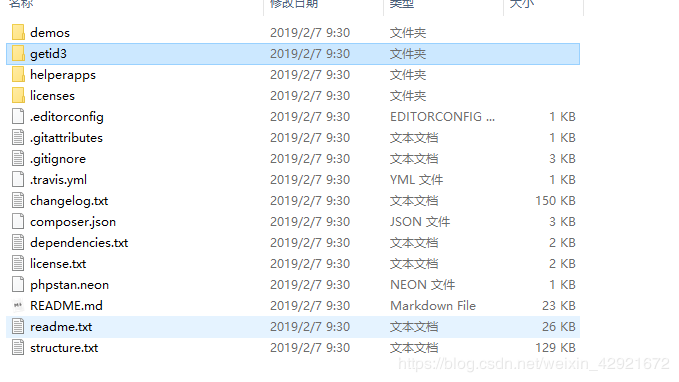 1.getid3 下载网址:www.getid3.org/ 2.下载完成 解压是这样的目录 把getid3 弄到tp 项目中 extend 文件夹中