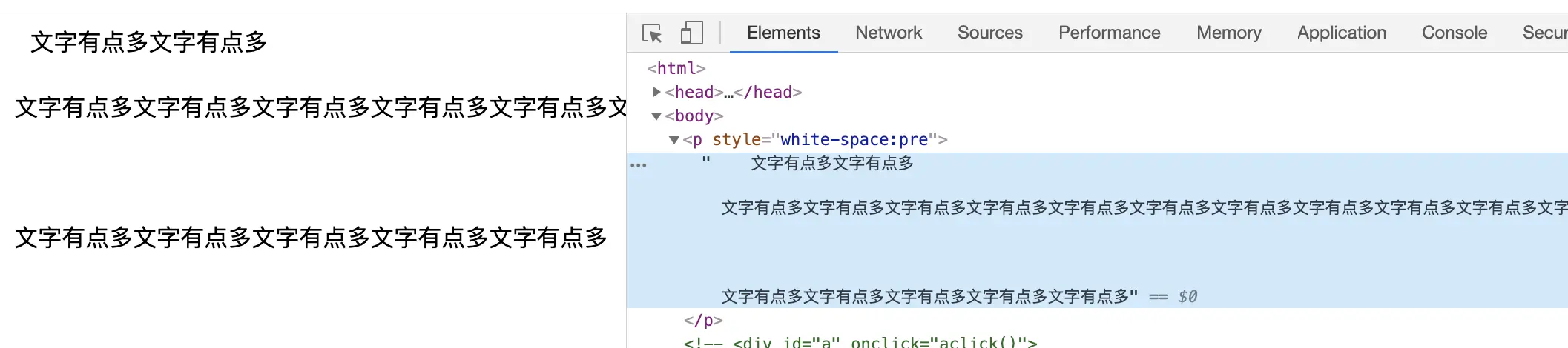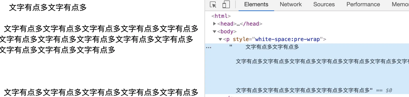 white-space:pre:我希望我写的格式就是最终展示的浏览器,浏览器不做任何处理,那就用这个值,或者用<pre>标签也一样的效果<p style="white-space:pre"> 文字有点多文字有点多 文字有点多文字有点多文字有点多文字有点多文字有点多文字有点多文字有点多文字有点多文字有点多文字有点多文字有点多文字有点多文字有点多 文字有点多文字有点多文字有点多文字有点多文字有点多</p>最后显示的效果如下: