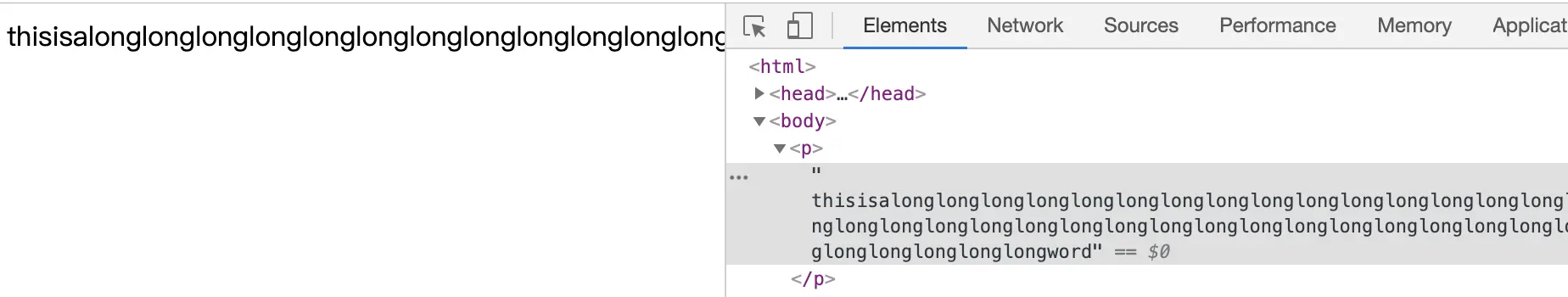 <p> thisisalonglonglonglonglonglonglonglonglonglonglonglonglonglonglonglonglonglonglonglonglonglonglonglonglonglonglonglonglonglonglonglonglonglonglonglonglonglonglonglonglonglonglonglonglonglonglonglonglonglonglonglonglonglonglonglonglonglonglonglongword</p>我们在p标签内部放了一些英文字母,这些字母之间并没有用空格来分隔开来,这就像文言文没有用标点符号断句一样。所以,就如同你看不懂没有断句的文言文,浏览器也看不懂没有用空格分隔的英文。于是浏览器在处理时,就会把这一长串英文只是当成一个很长很长的单词,只有一个单词也就不会换行,因为默认的换行只会在单词之间。