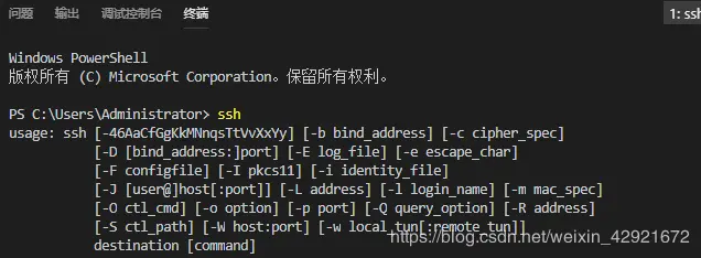 vs powershell 输入 ssh 查看是否生效