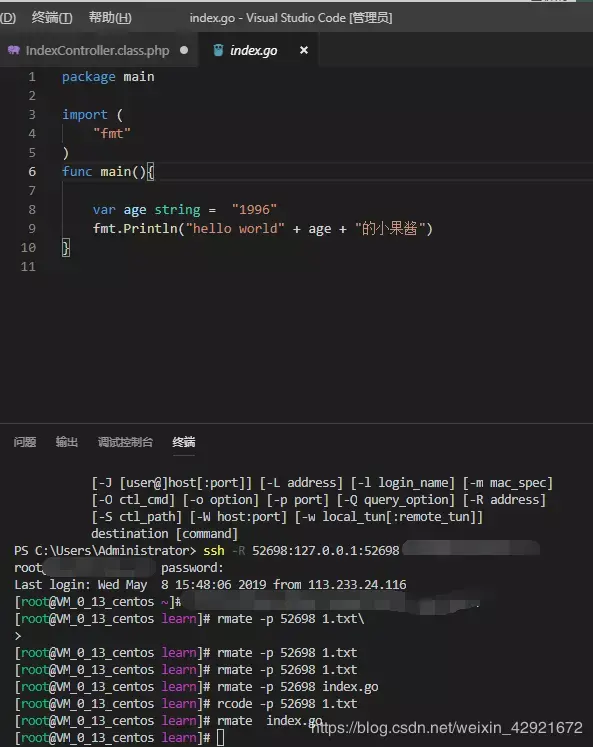 rcode -p 52698~/index.go