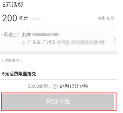 例如常见的例子: 要兑换5Q币需要200积分,但是我积分不足,所以兑换按钮是灰色无法点击的状态: