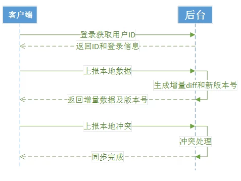 从时序图可以看出,后台有3个接口:登陆获取用户ID,上报本地数据,上报本地冲突。三个接口需要依次调用执行,才能完成同步。那么在接口测试就可以考虑打乱上述接口的执行顺序去执行,会有怎样的结果,是否会出现异常。例如:获取用户ID后不上报本地数据而直接上报本地冲突。