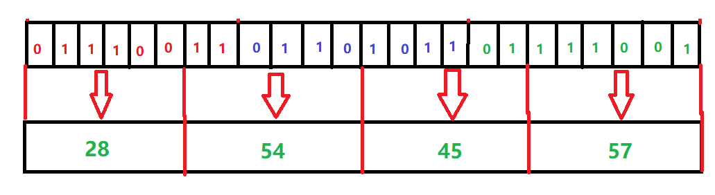 (2)对切分后的数据重组,24个bit重组为4组,每组6个bit。
