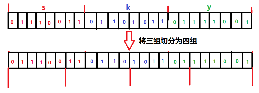 (2)对切分后的数据重组,24个bit重组为4组,每组6个bit