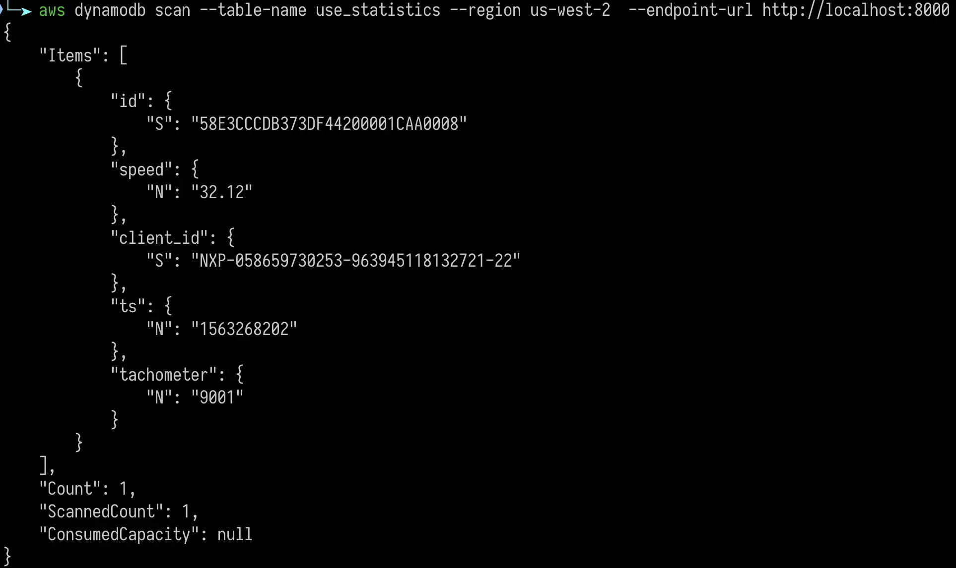 $ aws dynamodb list-tables --region us-west-2 --endpoint-url http://127.0.0.1:8000