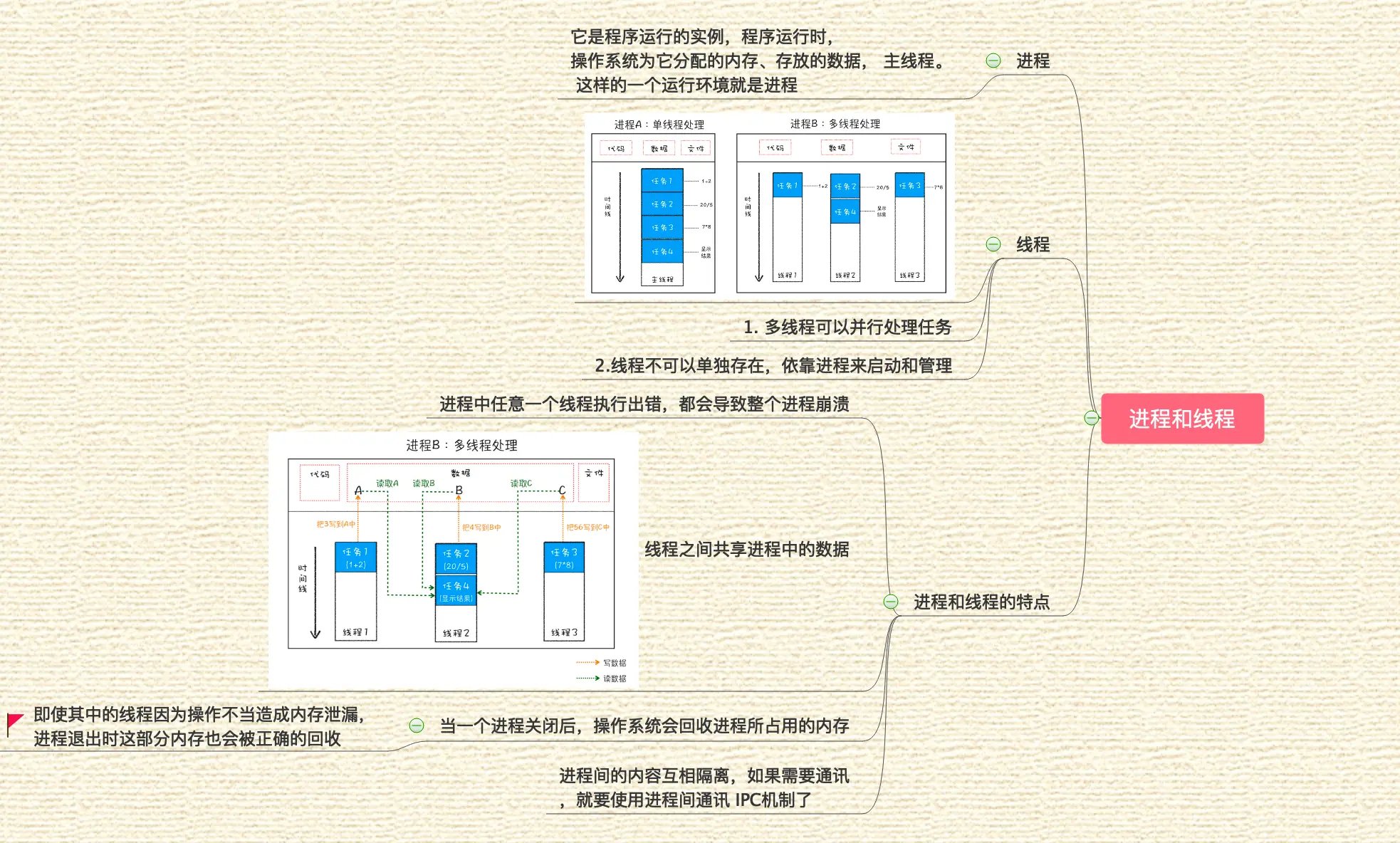 在回答这个问题之前, 李兵老师先详细的讲解了进程和线程的区别,在此附上我对老师讲解内容的整理