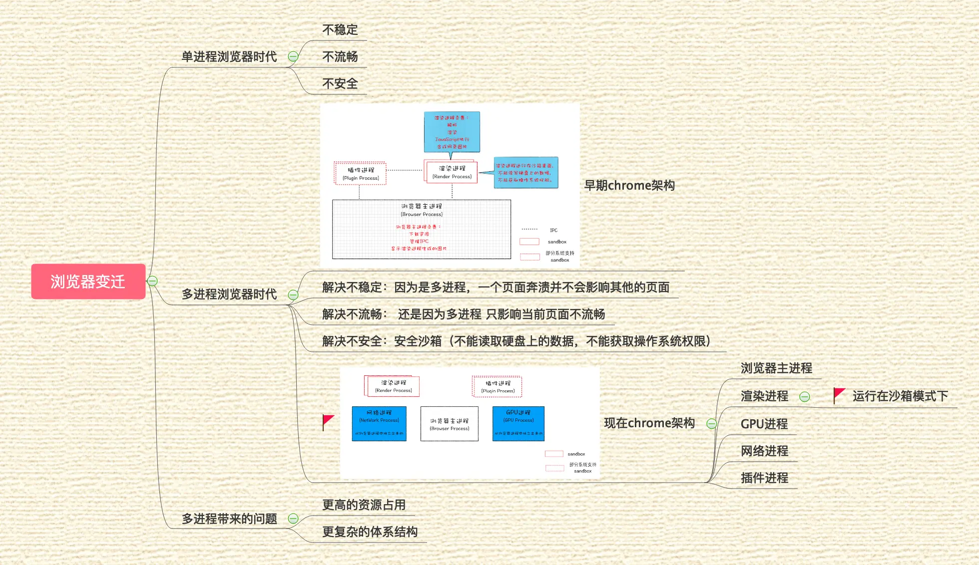 因为渲染进程的内容是通过网络获取的,获取的文件可能会存在恶意代码,这些代码是不安全不被信任的。所以渲染进程是运行在安全沙箱里的。