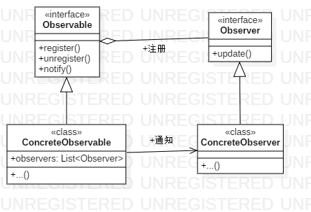 - 发布者/被观察者(抽象):添加、移除、通知观察者的职责