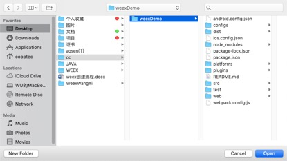 选择weexDemo文件,点击open就可以了