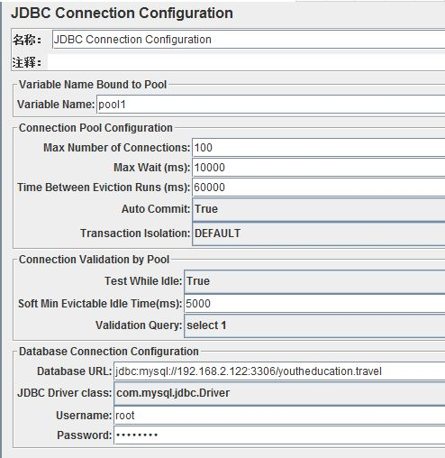 一:首先建立jdbc connection configuration,设置参数如图