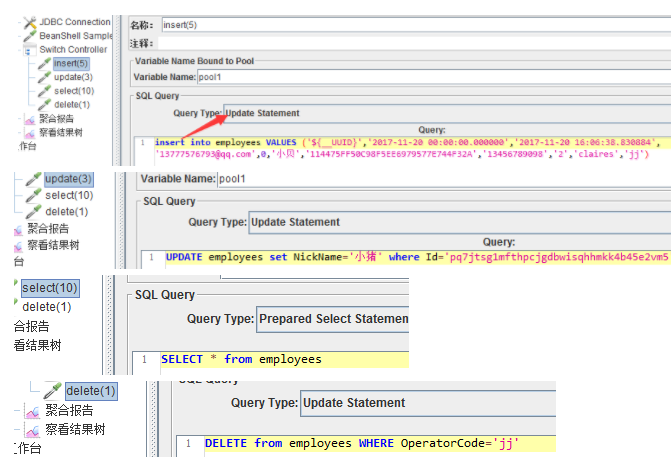 二:创建insert\select\delete\update的sample,如图