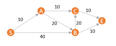 S-A-C的距离是20,而d(B) = 30, d(E) = ∞,那么,若想通过B或E(当然实际上这里E是不能到C的)