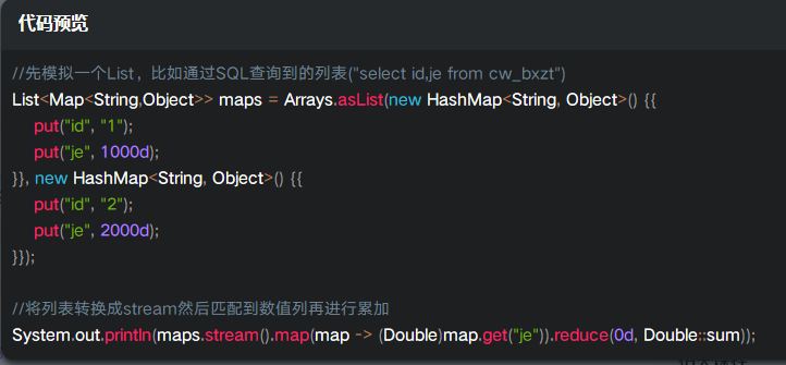 场景,通过SQL将多张表关联查询出带数值的列表,想对其进行分组然后再累加。但是SQL实现过于复杂效率也比较低。可以使用此方法模拟分组累计。
