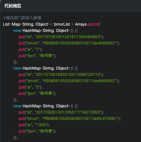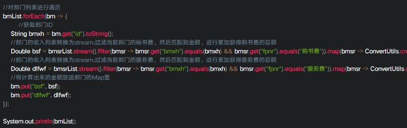 场景,各部门的收入费用信息是通过复杂SQL从N张表中获取的,现在对费用信息根据部门进行合计。