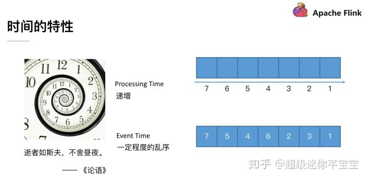 - 对于 Processing Time,因为我们是使用的是本地节点的时间(假设这个节点的时钟同步没有问题),我们每一次取到的 Processing Time 肯定都是递增的,递增就代表着有序,所以说我们相当于拿到的是一个有序的数据流。