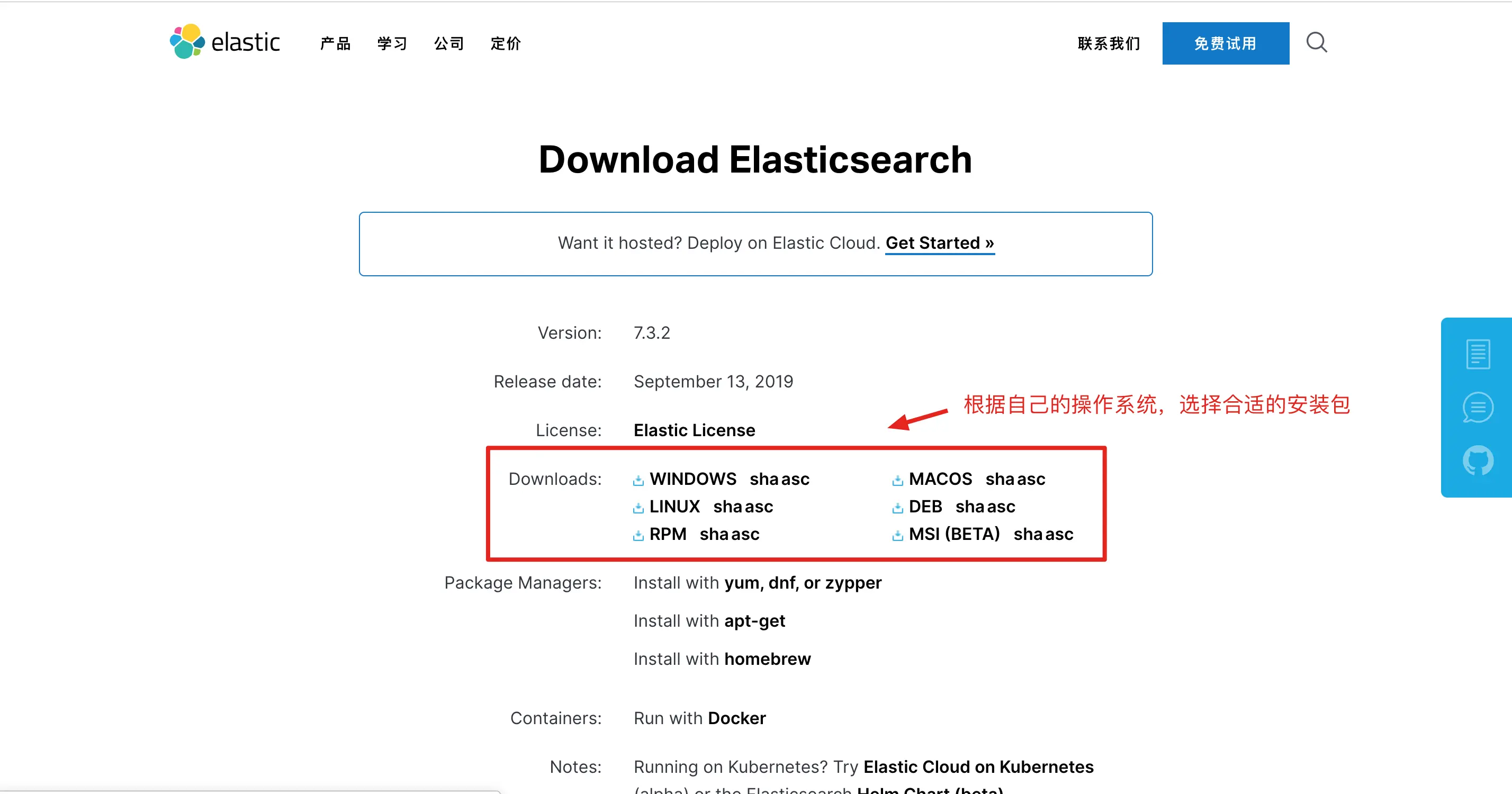 访问 Elasticsearch 官网 www.elastic.co/cn/download… 下载安装包: