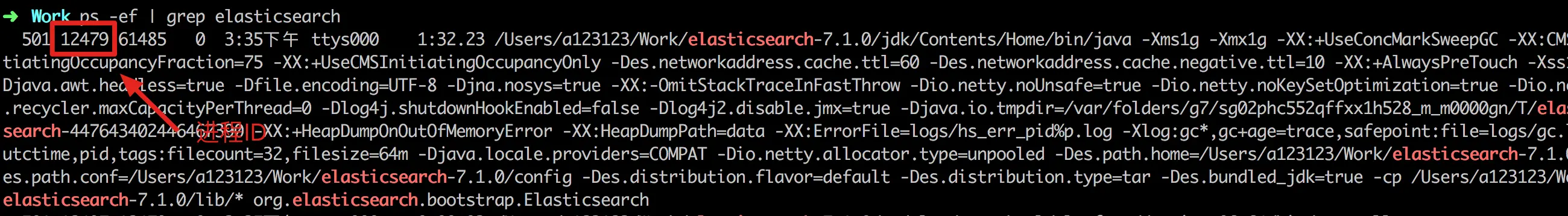 通过如下命令,找出正在运行的 ES 进程 PID: