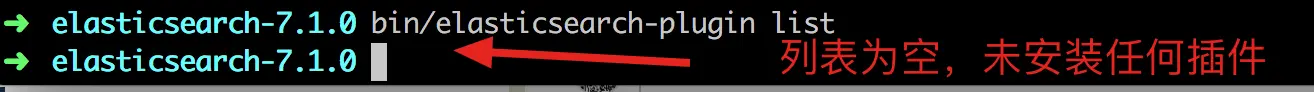 在 Elasticsearch 解压包的根目录下,通过如下命令,可以查看当前已安装的插件: