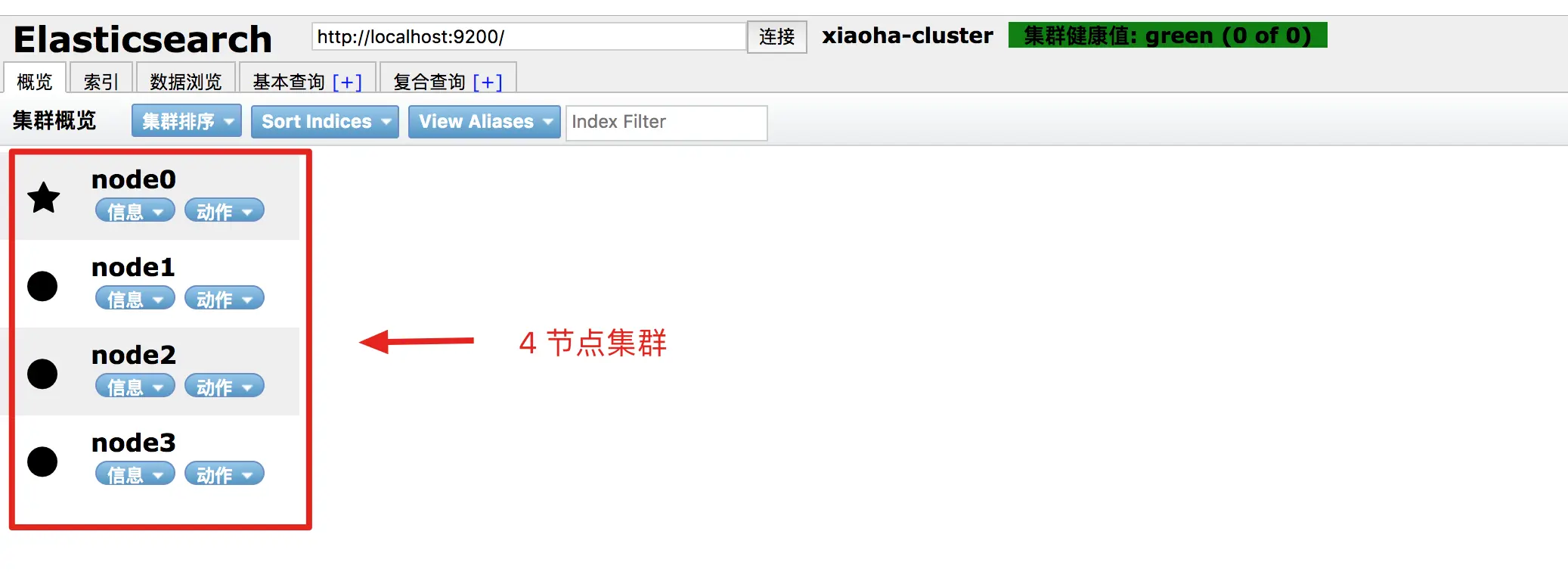 至此,一个 4 节点的 Elasticsearch 集群的本地环境搭建完毕。