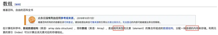 首先来看下什么是数组,下面的图是维基百科上对于数组的定义: