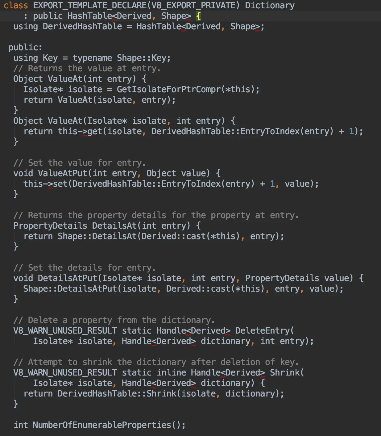 可以看到,内部是一个HashTable,然后定义了一些操作方法,和 Java 的 HashMap类似。
