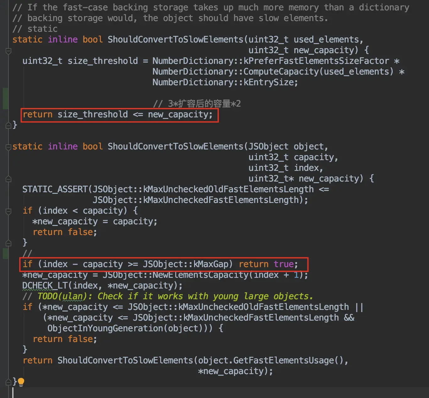 首先来看 V8 中判断快数组是否应该转为慢数组的源码: