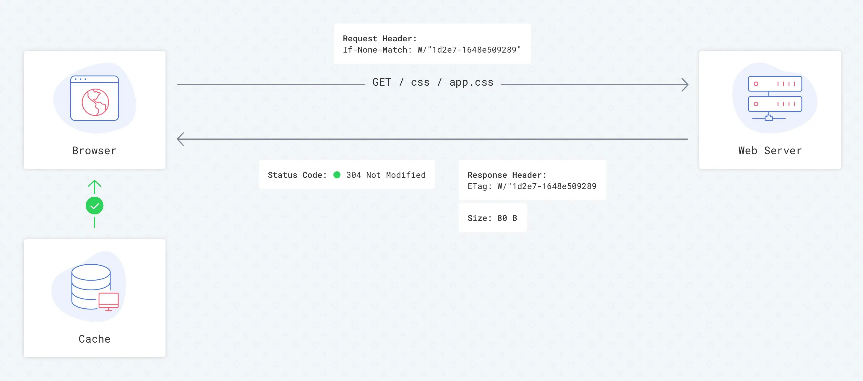 用了Etag,就会在服务端检测一下文件的hash值,之后浏览器再决定从缓存里拿还是从服务器重新加载。当资源没有修改时,只会使用大概80-100字节来验证一下,不管这个文件是10KB还是10MB。
