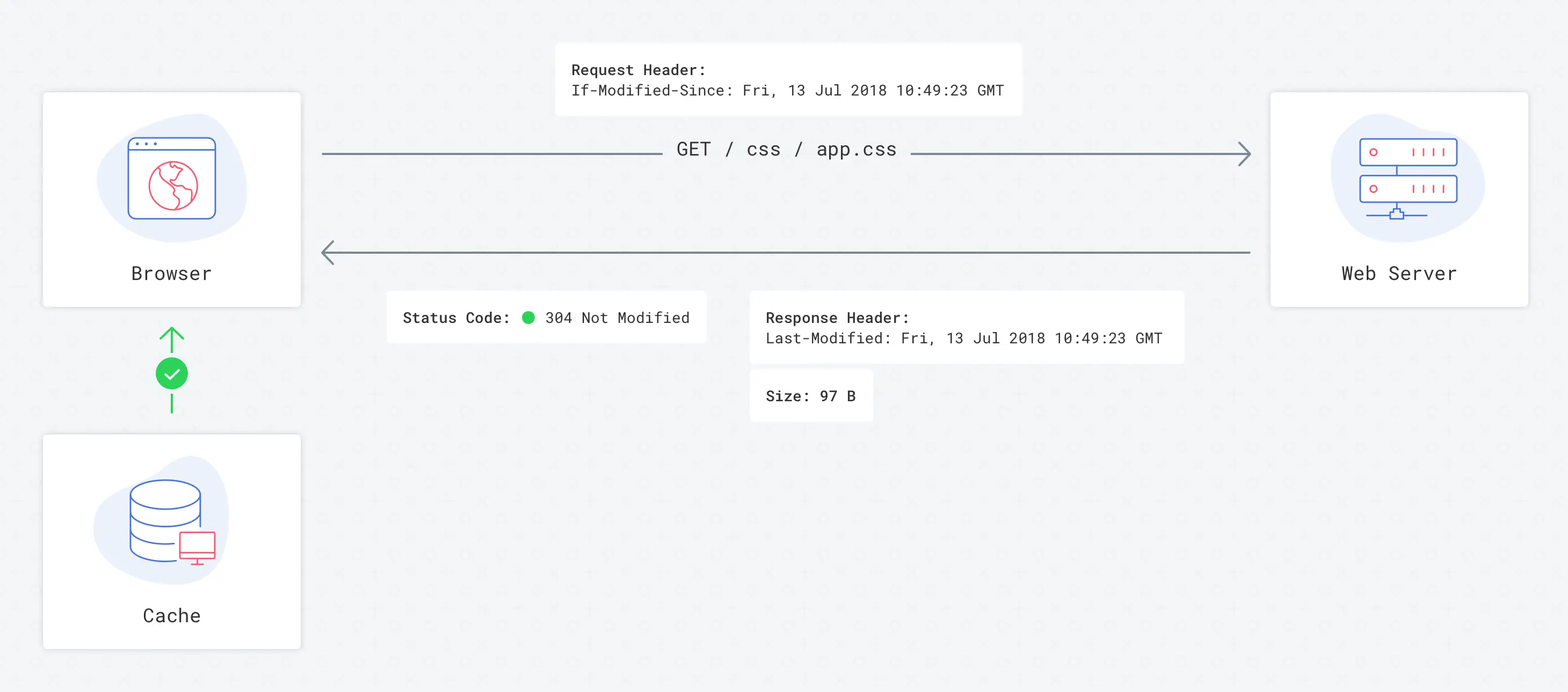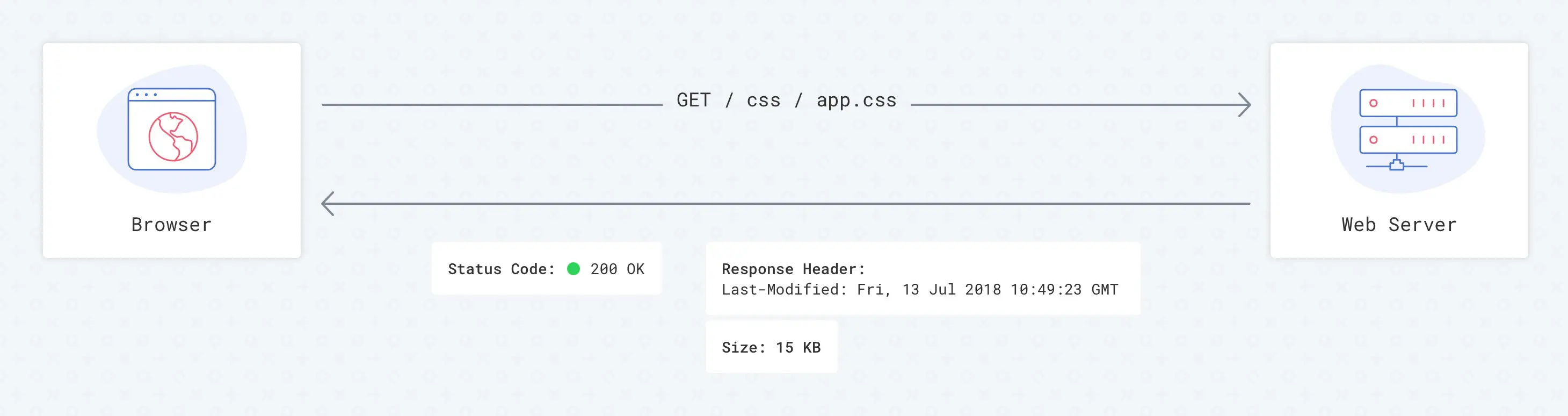 另外一个HTTP头缓存指令是“Last Modified”。这个和Etag很像,不过浏览器的行为不太一样。服务器端对每一个文件都有一个最后修改的时间戳;当文件首次被加载后,(第二次加载时),客户端会去问服务端:“从我最后一次访问这个文件后,这个文件是否有改动?”。为了这个提问,浏览器会在header里发送 If-Modified-Since: Fri, 13 Jul 2018 10:49:23 GMT 。如果资源被改动过,浏览器就会下载新文件(200),否则就用缓存版本(304)。