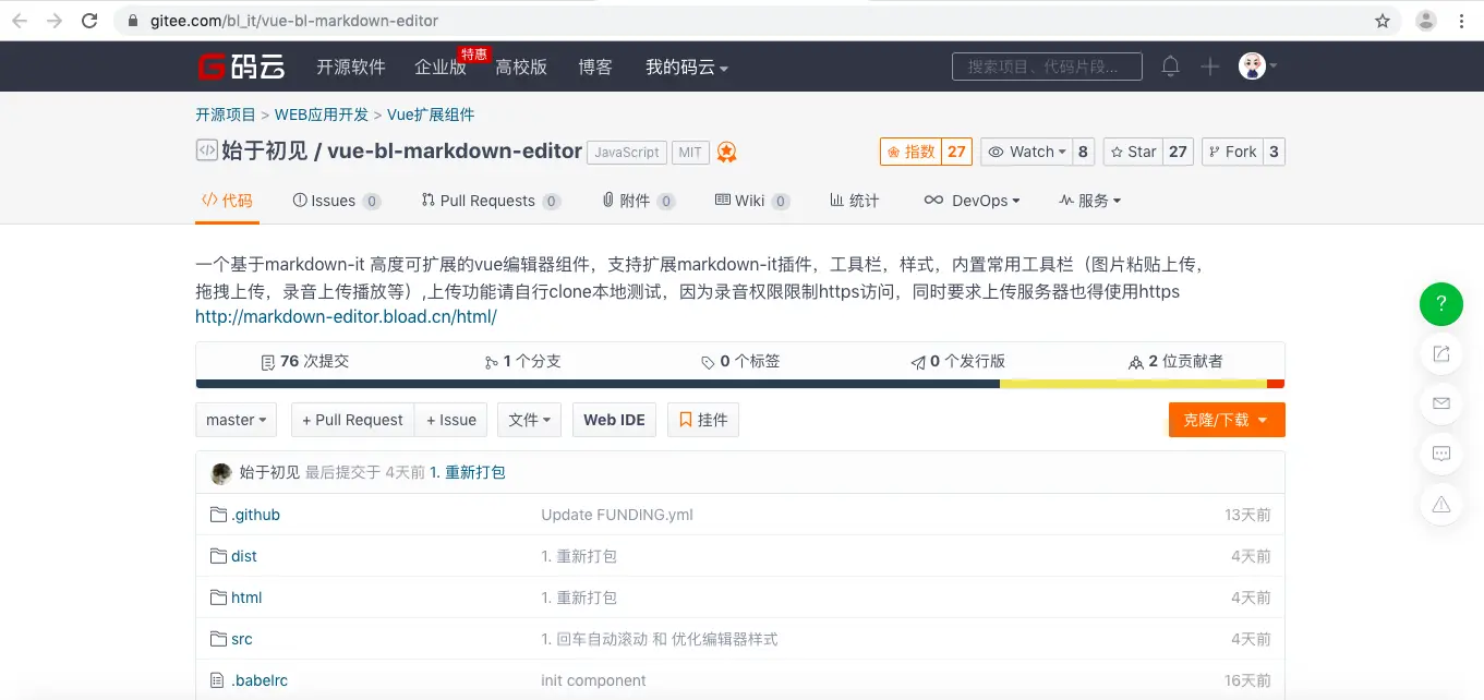 我在oschina看到了vue-bl-markdown-editor的首页推荐