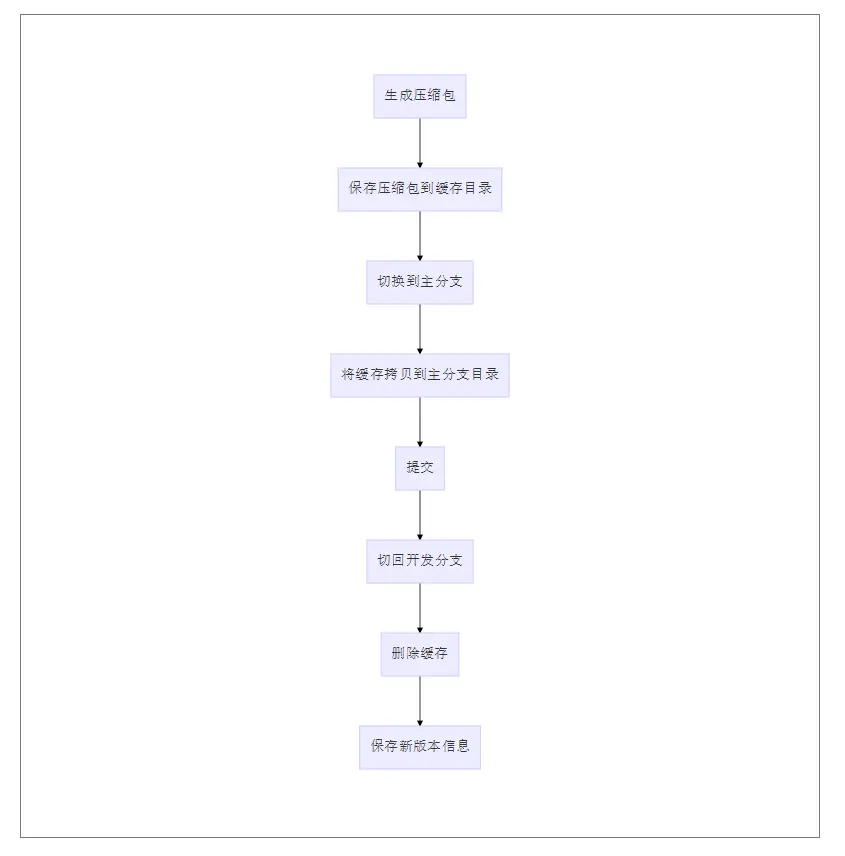dev, 主分支marster, 当处于开发分支时,执行脚本命令zip自动完成 ,压缩包生成, 分支切换, 文件更新及提交
