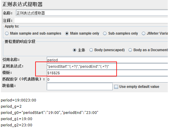 正则表达式提取器设置如下:
