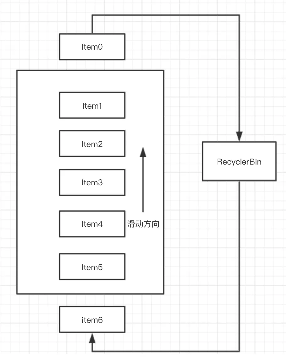 在setupChild方法中,调用了addViewInLayout方法将ListView中item对应的View添加到了ListView中。前面说过,在fillDown方法的while循环中,在item的View将ListView控件填满后则会跳出循环,当我们滚动屏幕时,屏幕外的item才会被绘制并展示到屏幕中,而之前在屏幕内的item则被移除出去,这就涉及到了ListView的一个重要机制——缓存机制。