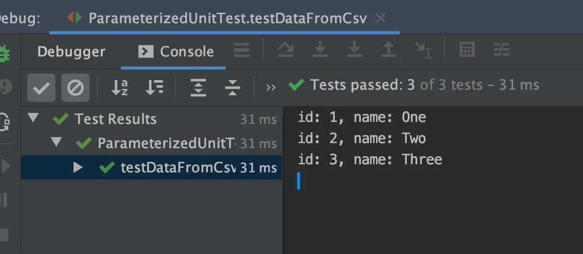 void testDataFromCsv(long id, String name) {