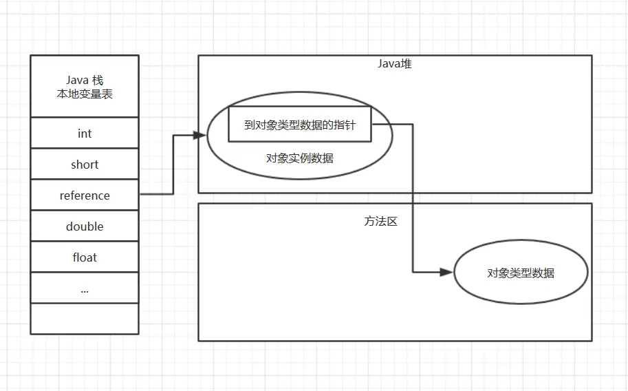 refenerce中存储的就是对象的句柄地址,而句柄中包含了对象实例数据与类型数据各自的具体地址。