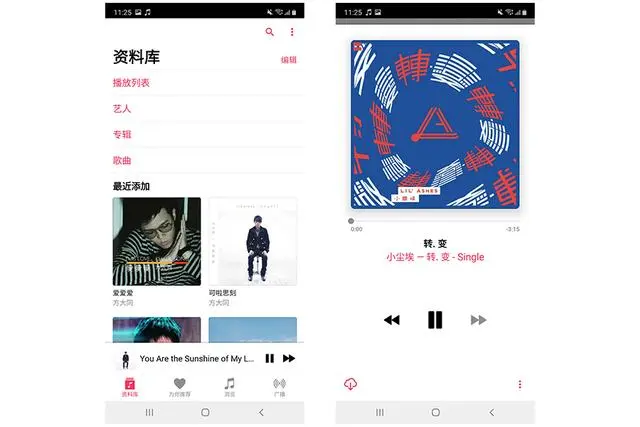 那么新版与此前版本很大不同的是,现在Android版Apple Music已经大改了界面,不再是Android原生界面规范,改成与iOS版统一界面了,也就是把主要功能移到了底部一栏,所以对于iPhone用户转投过来会非常熟悉了,但如果你是用惯Android上其它音乐app的话,可能反而就不习惯了,而对于我来说,这个界面无论看起来,还是用起来都太舒服了!基本接近了iOS版的体验,总算让我满意了。