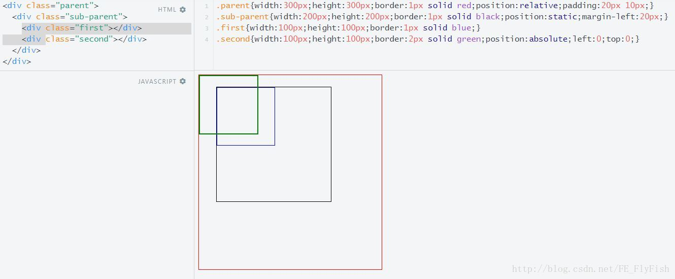 由上面两个图得知absolute实质上是相对于static定位以外的第一个父元素的border进行定位。
