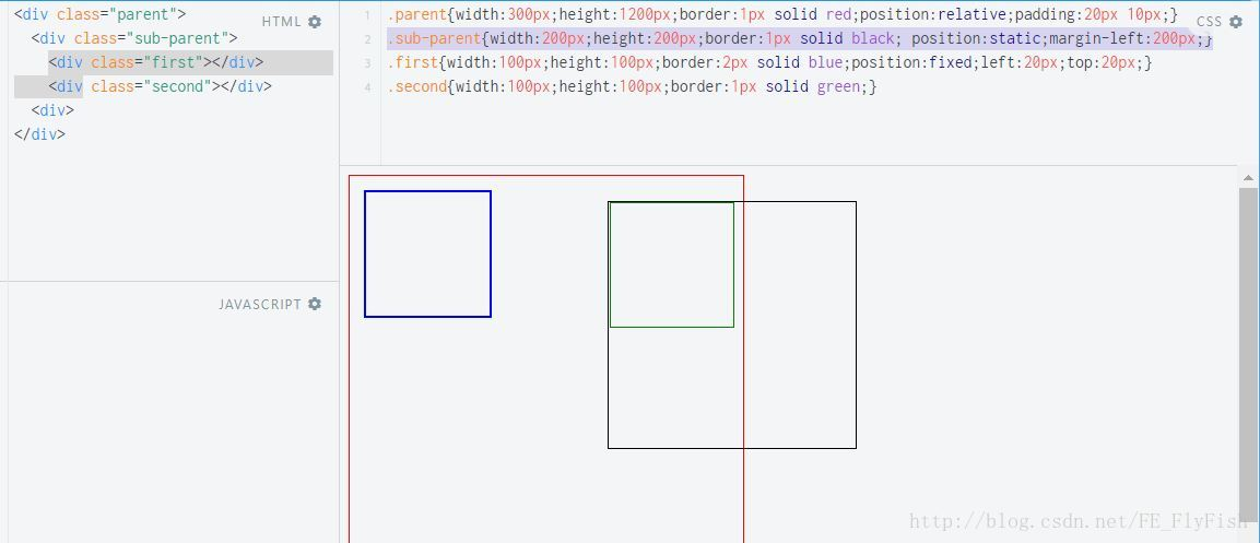 由上图可见 fixed定位也脱离了标准文档流,与absolute不同的是 fixed是根据窗口为原点进行偏移定位的,也就是说,它不会根据滚动条的滚动而进行偏移。