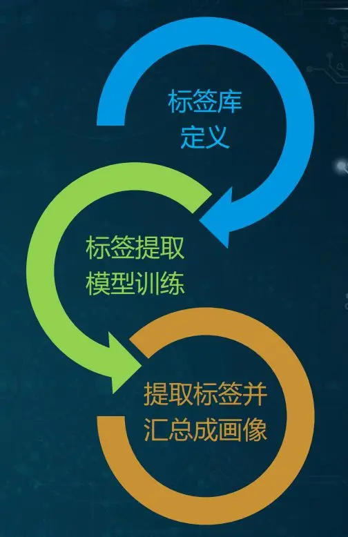 总体的实施路线如图3所示,先通过业务分析来定义业务关注的标签库,然后针对定义出来的标签训练相应的提取模型,最后利用模型对数据进行分析,得到一系列客户标签,再对其进行汇总,最终形成客户画像。