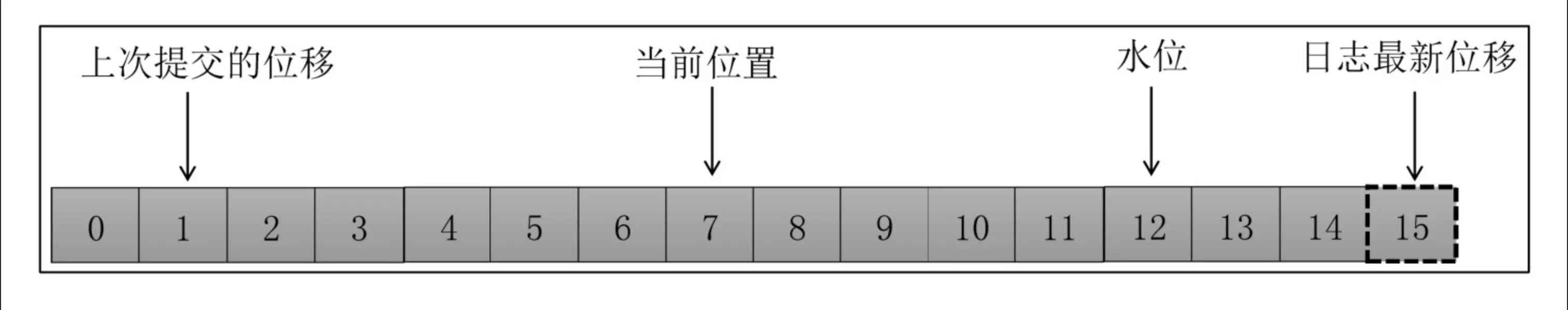 - 日志最新位移:表示当前分区副本所写入的消息的最新位移,也就是说,在水位和最新位移之间的数据都是还未完全写入各个分区副本的消息;