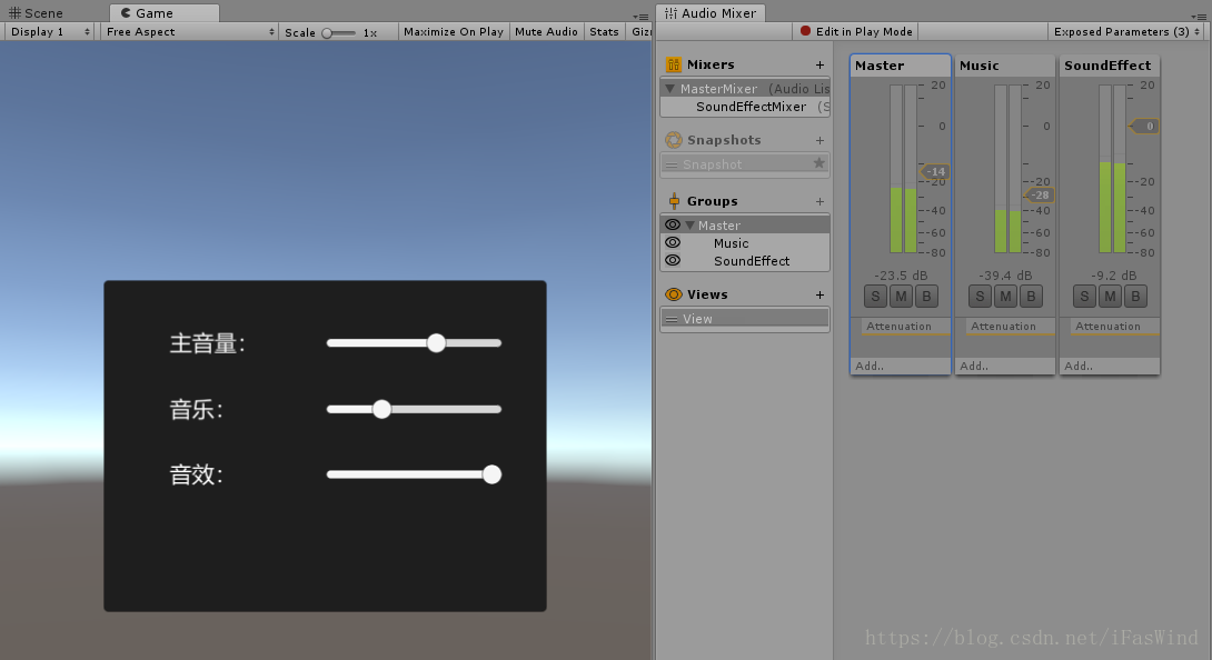 3、Audio Mixer 混音器系统,可用于分开控制背景音乐和音效音乐的开关和大小。