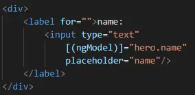 [(ngModel)]="hero.name" 这里相当于把hero.name的属性绑定到了HTML的textbook元素上 -
