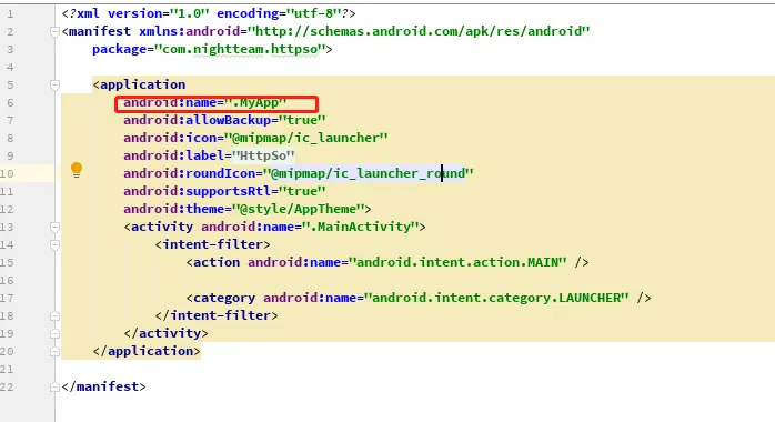 然后在 manifest 文件中指定要启动的 Application