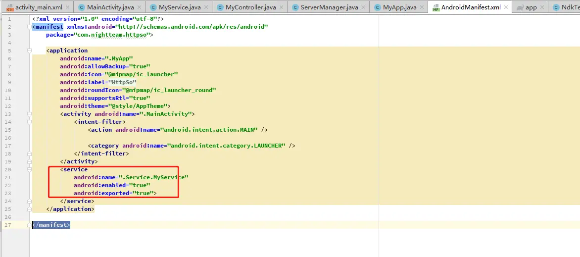 最后注意检查下 manifest 文件中 Service 的声明