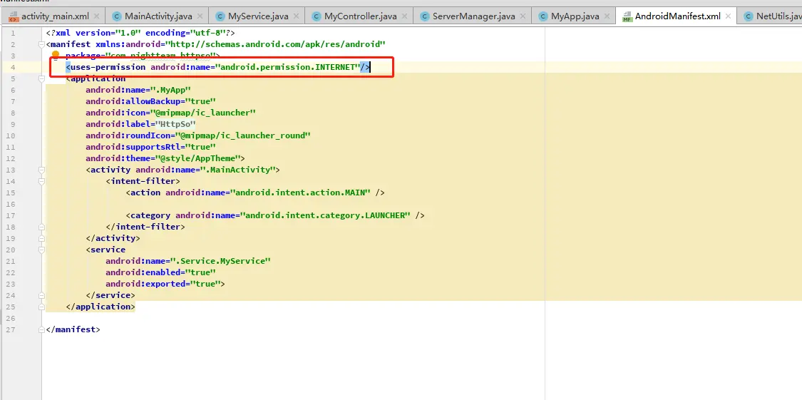 最后一步就是为 app 申请网络权限了
