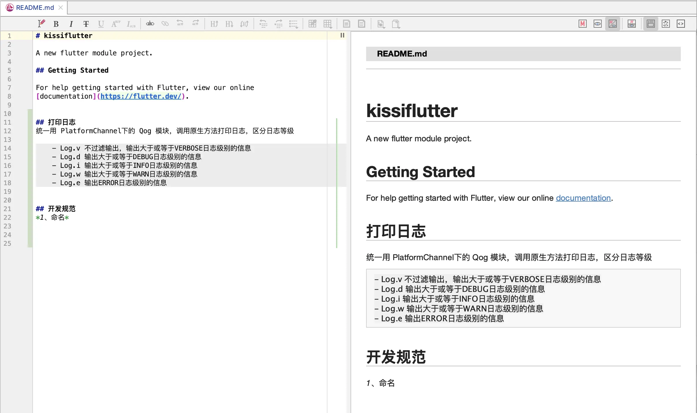 右侧便是预览效果,同时左侧提供了一些 markdown 编辑工具