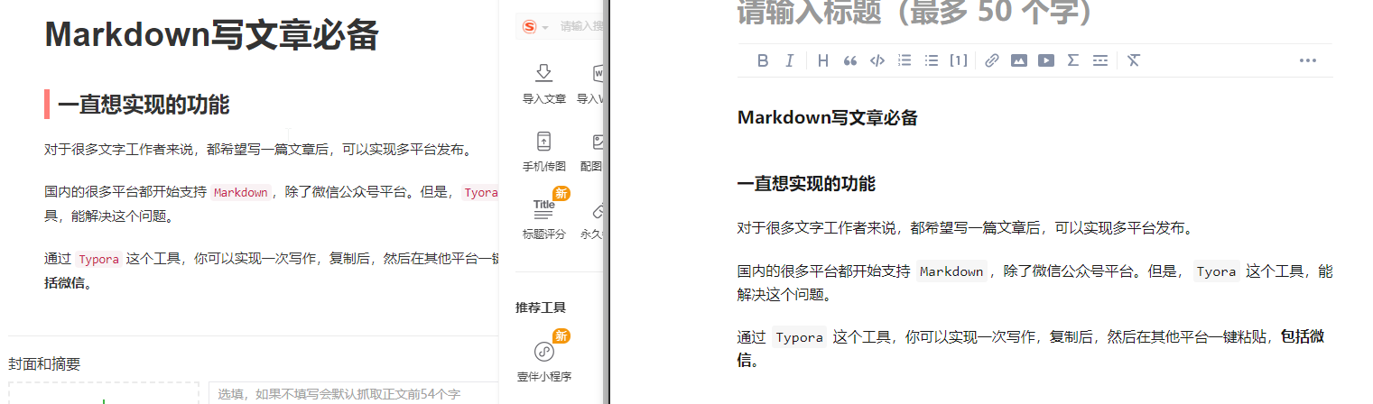 国内的很多平台都开始支持 Markdown,除了微信公众号平台。但是,Tyora 这个工具,能解决这个问题。