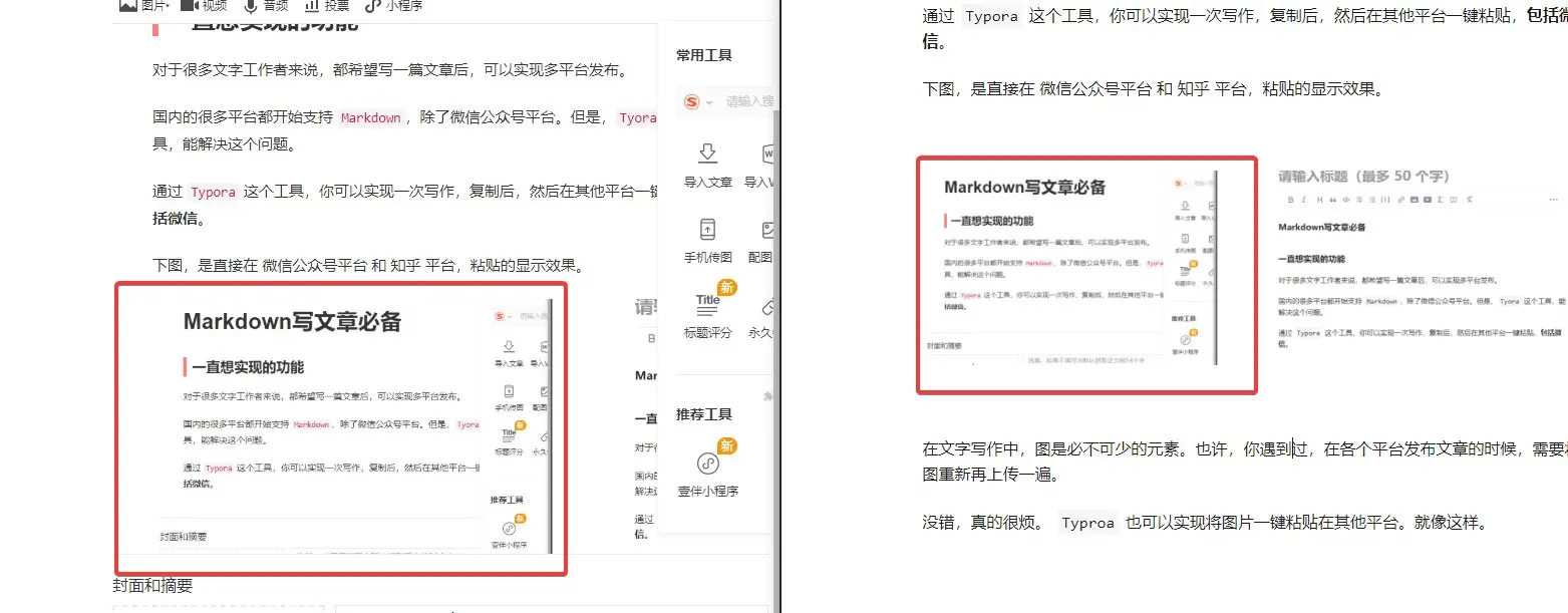 没错,真的很烦。 Typroa 也可以实现将图片一键粘贴在其他平台。就像这样。