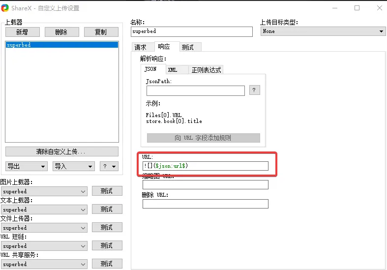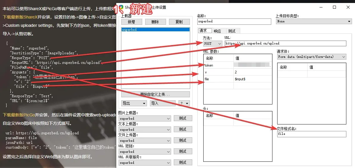 如果你成功了,恭喜,你之后需要将 图片上载器 那一列修改成配置刚才配置的名字,superbed。